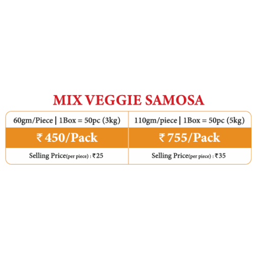 Refined Wheat Flour, Ajwain, green chilli, coriender leaves, potatoes, carrot, beans, Gobhi, green peas, ginger, ghee, refined sunflower oil, RO water, iodized salt, Masala Mix